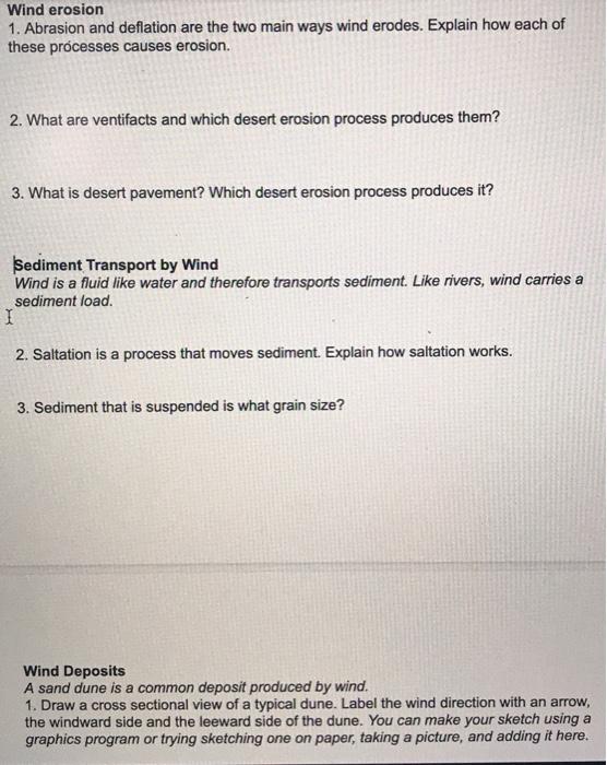 Solved Wind Erosion 1 Abrasion And Deflation Are The Two Chegg Com